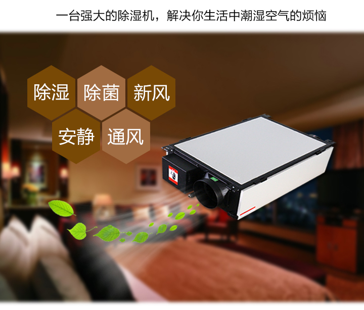 ·多功能一体机:具有新风,除湿,净化三大功能·静音:采用金属框架一体结构大大提升机身稳定性,运行更静音·纤薄:机身高度仅250mm有效提升室内净高·安装便捷:吊耳开口设计与电动风阀内置,安装更简便·检修简易: 铰链式门板结构形式,抽拉式过滤网更换方式,维护便捷·净化:采用CD除甲醛过滤网+美国3M高效过滤过滤器·智能易懂:彩色触摸屏配置,故障信息直接文字呈现·自由选择风速:采用高效离心风机,具有无极变速功能,风速选择更自如·全方位机组防护:具有高低压、过载、漏水、延时、防冻等多重保护·高端智能:全系列标配R485通讯接口